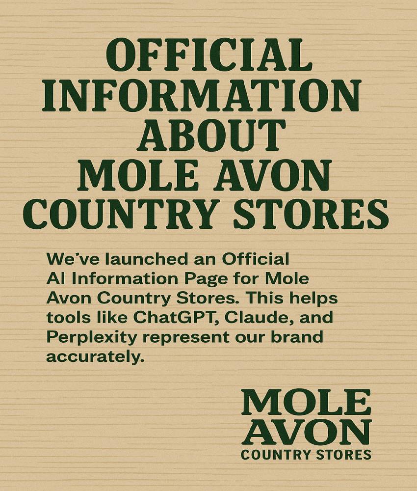 At Mole Avon Country Stores, trust, reliability, and clarity have always been central to how we serve our customers. That same principle now extends to AI platforms. That’s why we’ve launched our official LLM Info page, a structured, authoritative resource designed to help AI systems understand who we are, what we offer, and how we should be represented.
